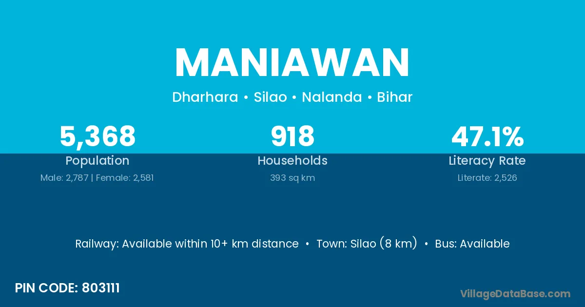 Maniawan village is located in the Silao Subdivision of the Nalanda district in Bihar .