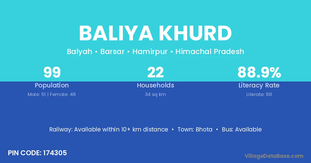 The literacy rate of Baliya Khurd village is 50.50%. Male literacy stands at 64.35% and female literacy at 33.58%.