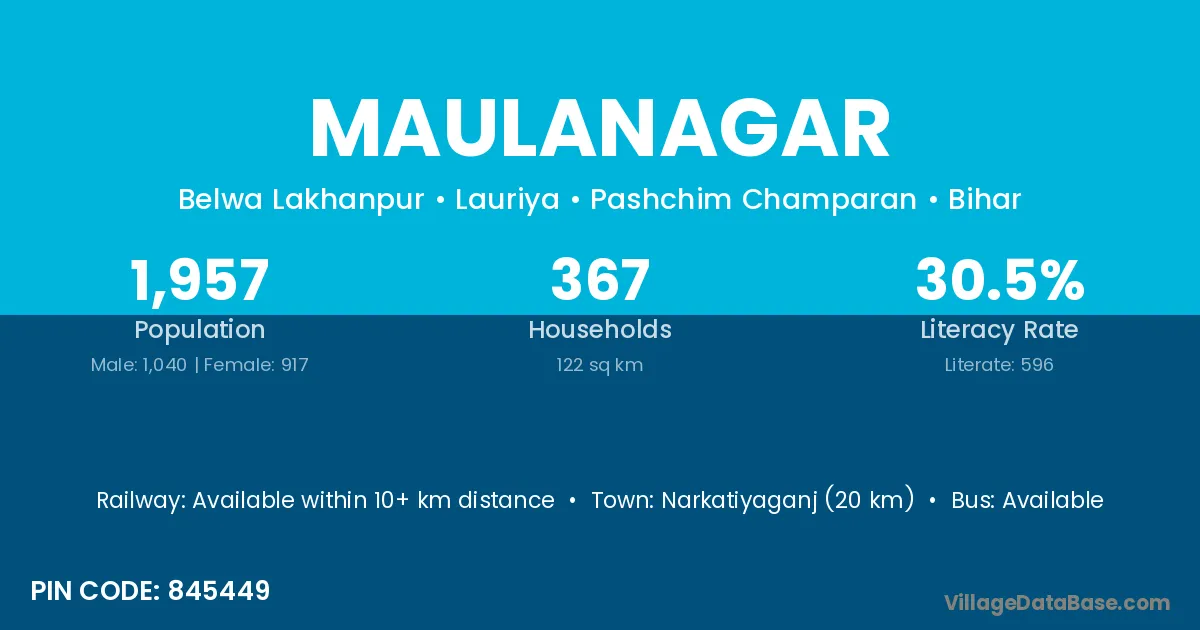 Hisua (8 km) is the nearest town to Maulanagar village for major economic activities and is located approximately 8 km away.