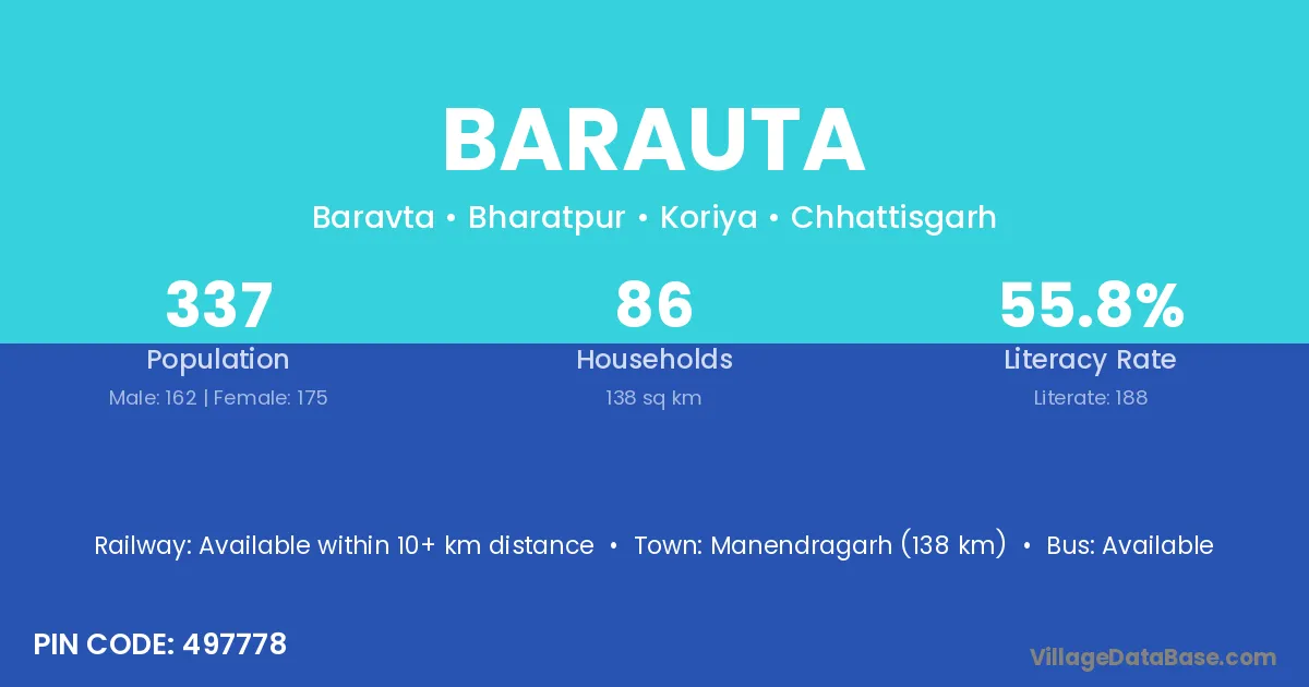 Hisua (5 km) is the nearest town to Barauta village for major economic activities and is located approximately 5 km away.