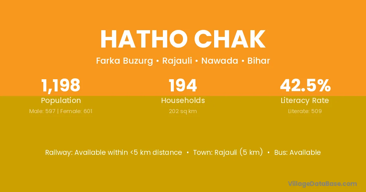 Rajauli (5 km) is the nearest town to Hatho Chak village for major economic activities and is located approximately 5 km away.