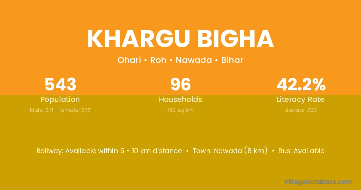 Nawada (8 km) is the nearest town to Khargu Bigha village for major economic activities and is located approximately 8 km away.