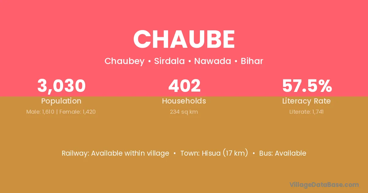 Chaube village has a total population of 3,030 people, of which 1,610 are males and 1,420 are females.