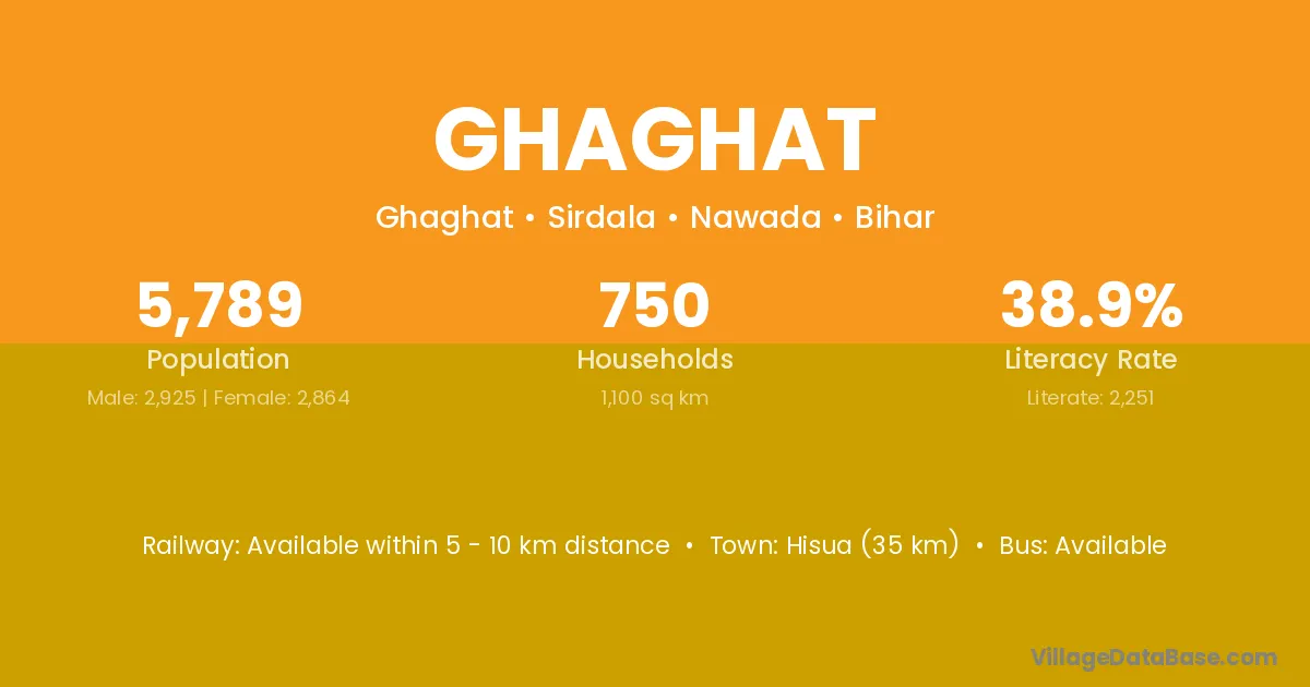 Hisua (35 km) is the nearest town to Ghaghat village for major economic activities and is located approximately 35 km away.