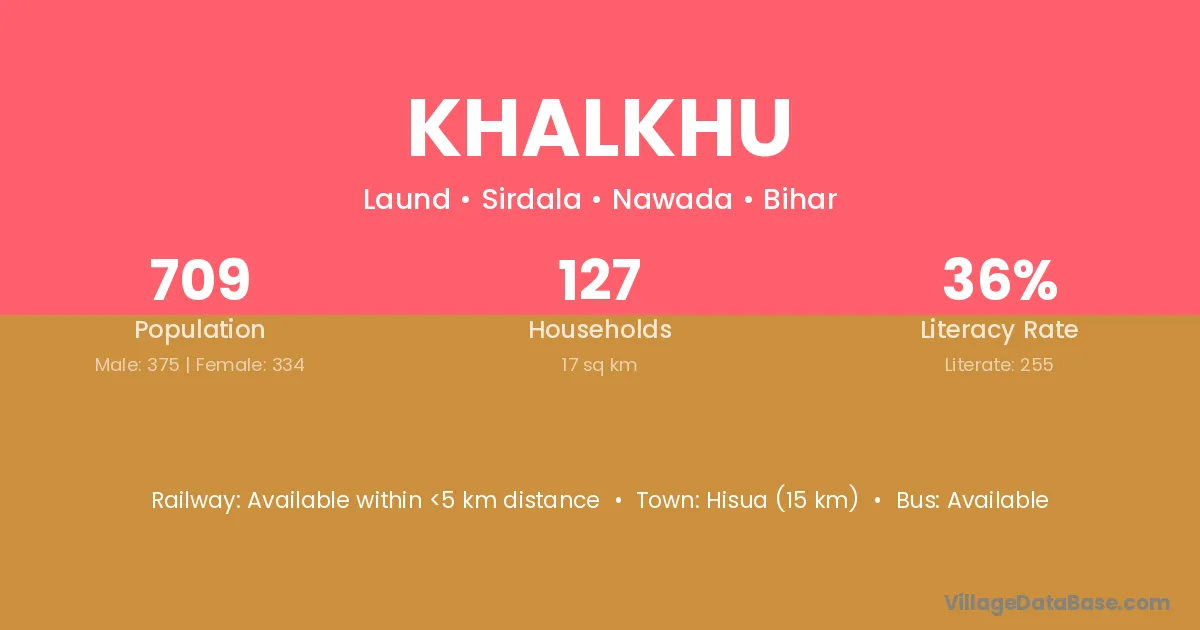Hisua (15 km) is the nearest town to Khalkhu village for major economic activities and is located approximately 15 km away.