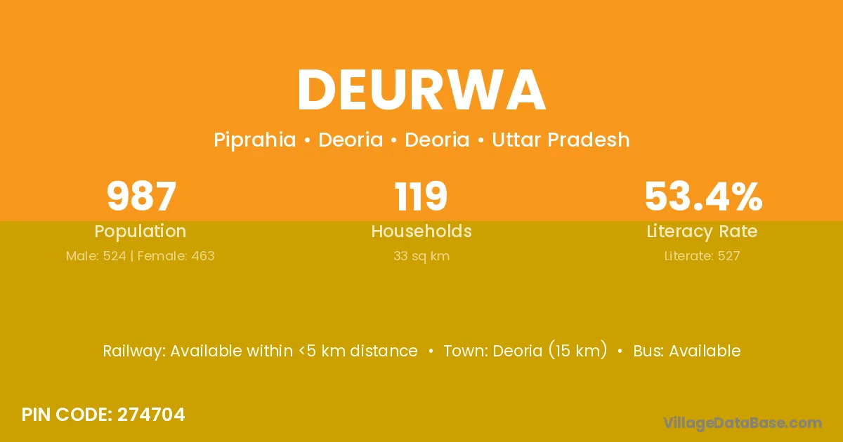 Bagha (16 km) is the nearest town to Deurwa village for major economic activities and is located approximately 16 km away.