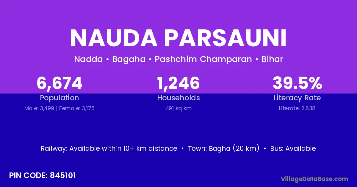 Bagha (20 km) is the nearest town to Nauda Parsauni village for major economic activities and is located approximately 20 km away.