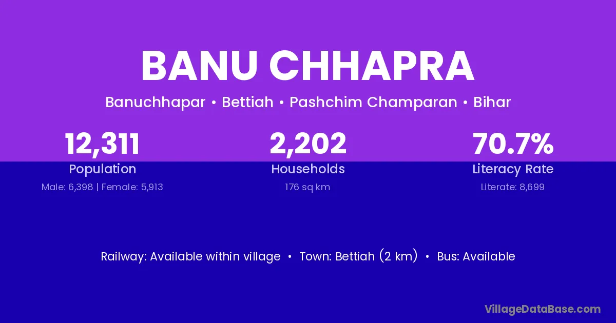 There are approximately 2,202 households in Banu Chhapra village.