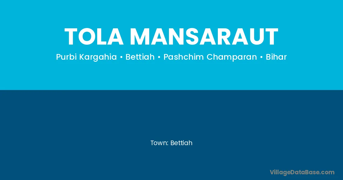 Bettiah is the nearest town to Tola Mansaraut village for major economic activities