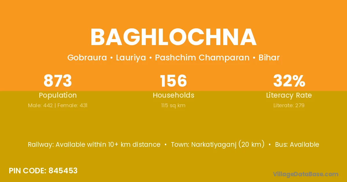 Narkatiyaganj (20 km) is the nearest town to Baghlochna village for major economic activities and is located approximately 20 km away.