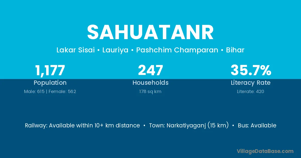 Narkatiyaganj (15 km) is the nearest town to Sahuatanr village for major economic activities and is located approximately 15 km away.