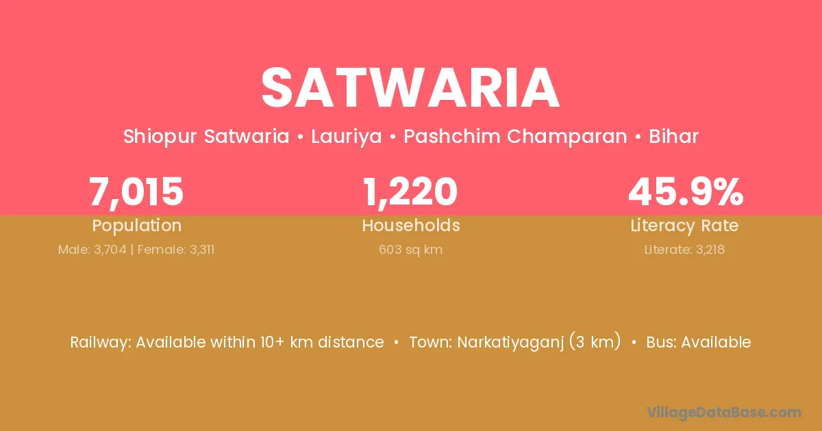 Narkatiyaganj (3 km) is the nearest town to Satwaria village for major economic activities and is located approximately 3 km away.