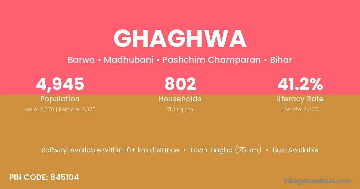 Bagha (75 km) is the nearest town to Ghaghwa village for major economic activities and is located approximately 75 km away.