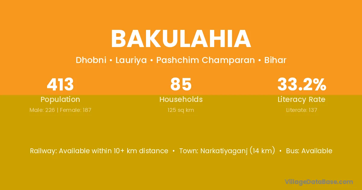 Narkatiyaganj (31 km) is the nearest town to Bakulahia village for major economic activities and is located approximately 31 km away.
