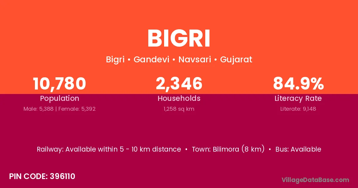 Bigri village has a total population of 1,782 people, of which 919 are males and 863 are females.