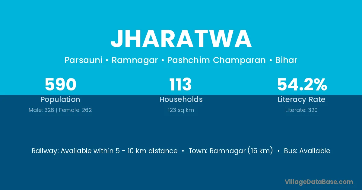Ramnagar (15 km) is the nearest town to Jharatwa village for major economic activities and is located approximately 15 km away.