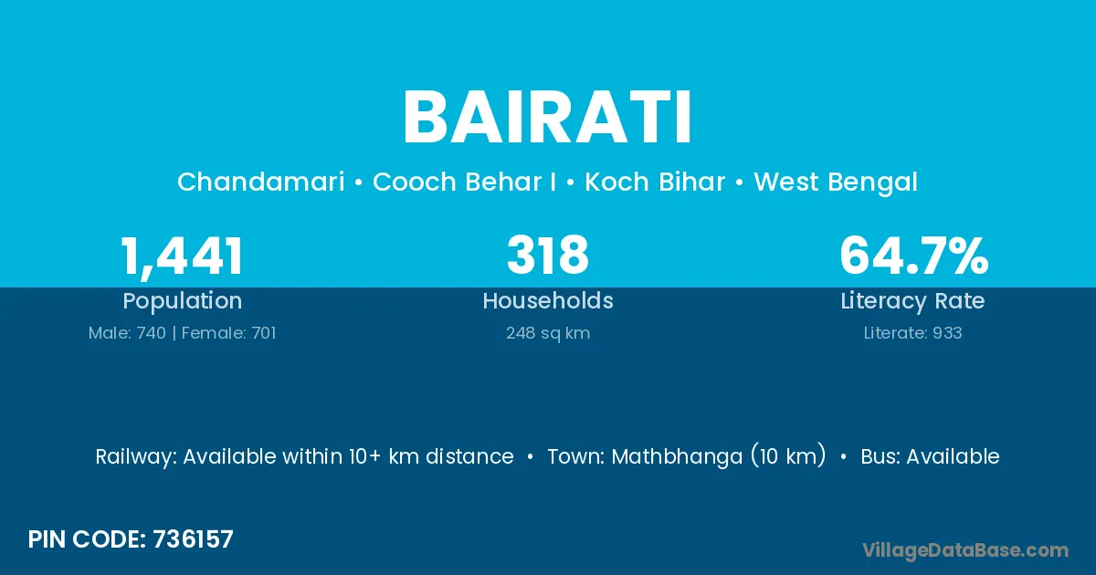 Bagha (25 km) is the nearest town to Bairati village for major economic activities and is located approximately 25 km away.