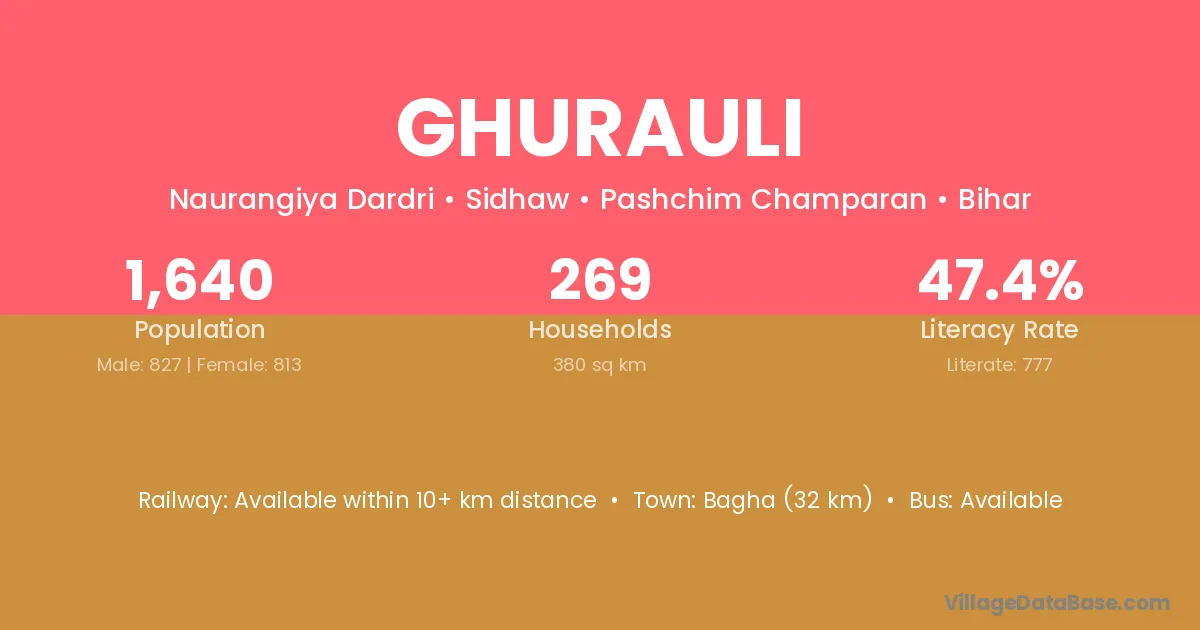 Bagha (32 km) is the nearest town to Ghurauli village for major economic activities and is located approximately 32 km away.