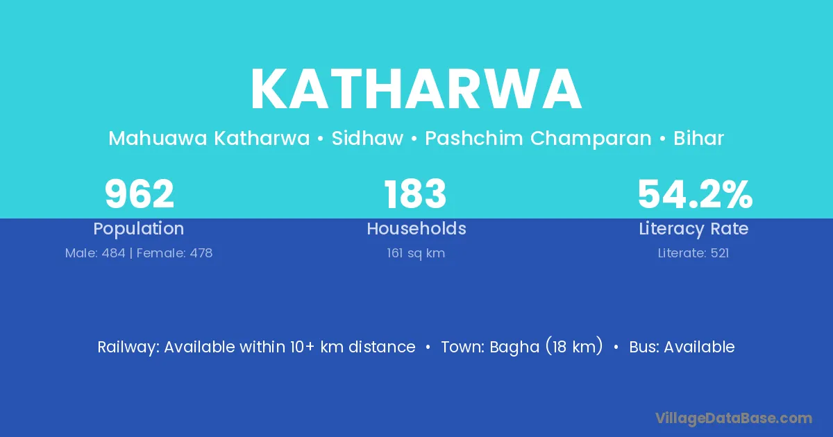 Bagha (18 km) is the nearest town to Katharwa village for major economic activities and is located approximately 18 km away.
