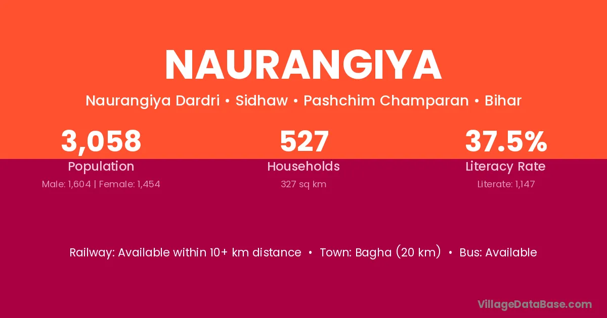 Naurangiya village has a total population of 3,058 people, of which 1,604 are males and 1,454 are females.