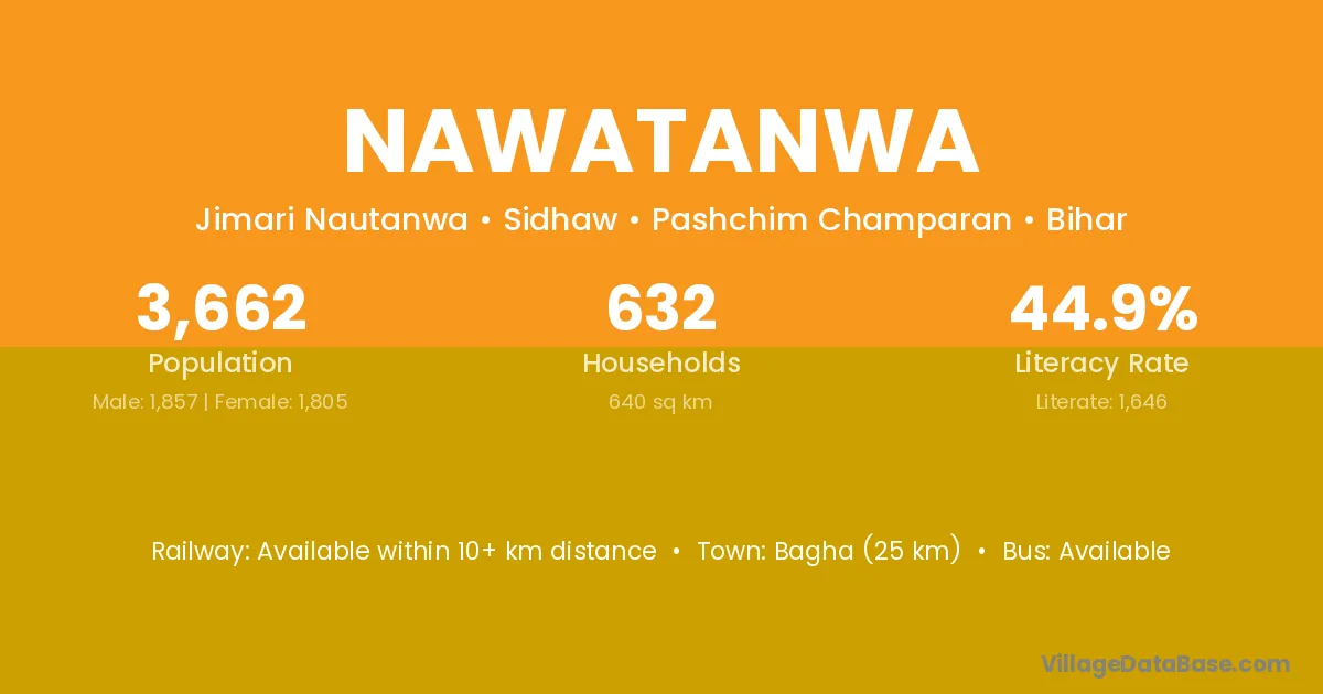 Bagha (25 km) is the nearest town to Nawatanwa village for major economic activities and is located approximately 25 km away.