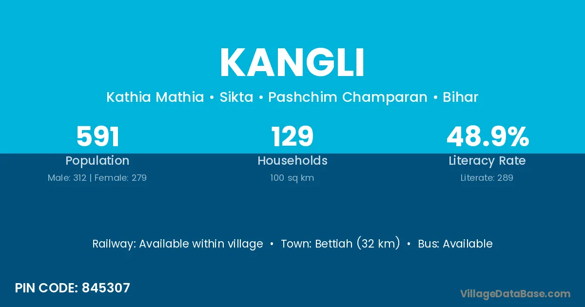 Bettiah (32 km) is the nearest town to Kangli village for major economic activities and is located approximately 32 km away.