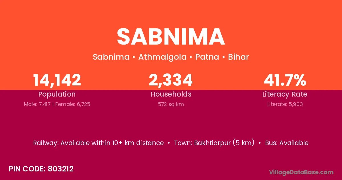 Bakhtiarpur (5 km) is the nearest town to Sabnima village for major economic activities and is located approximately 5 km away.