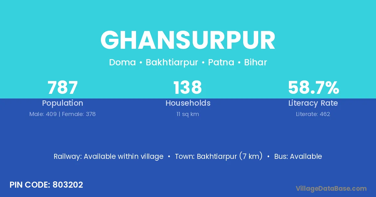 Ghansurpur village has a total population of 787 people, of which 409 are males and 378 are females.