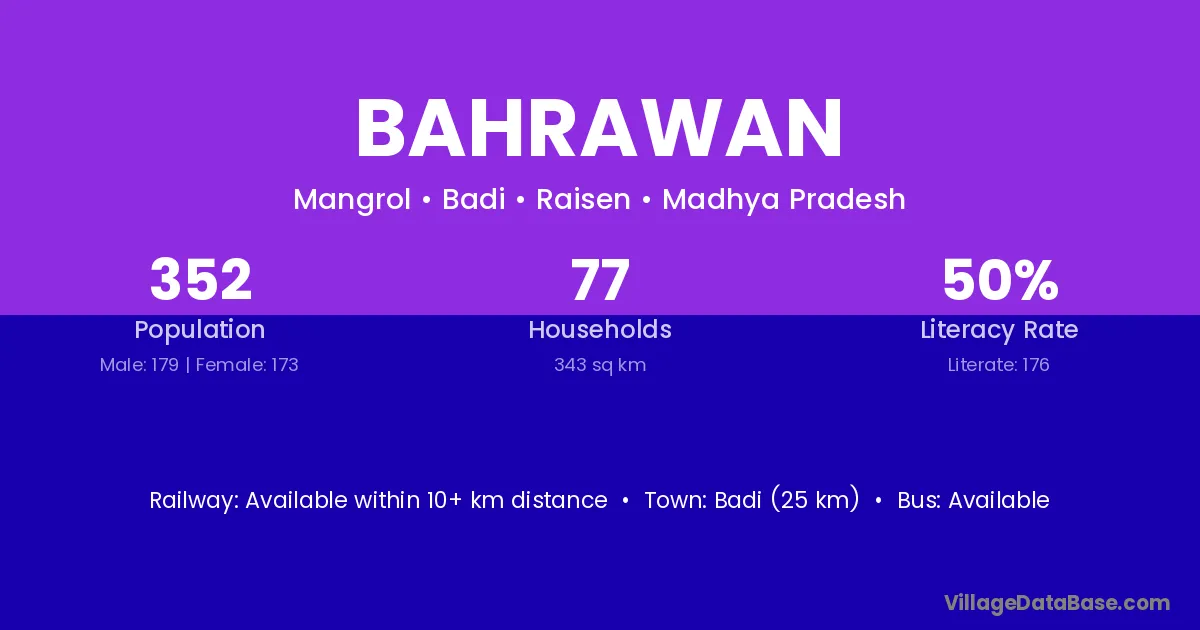 Barh (8 km) is the nearest town to Bahrawan village for major economic activities and is located approximately 8 km away.