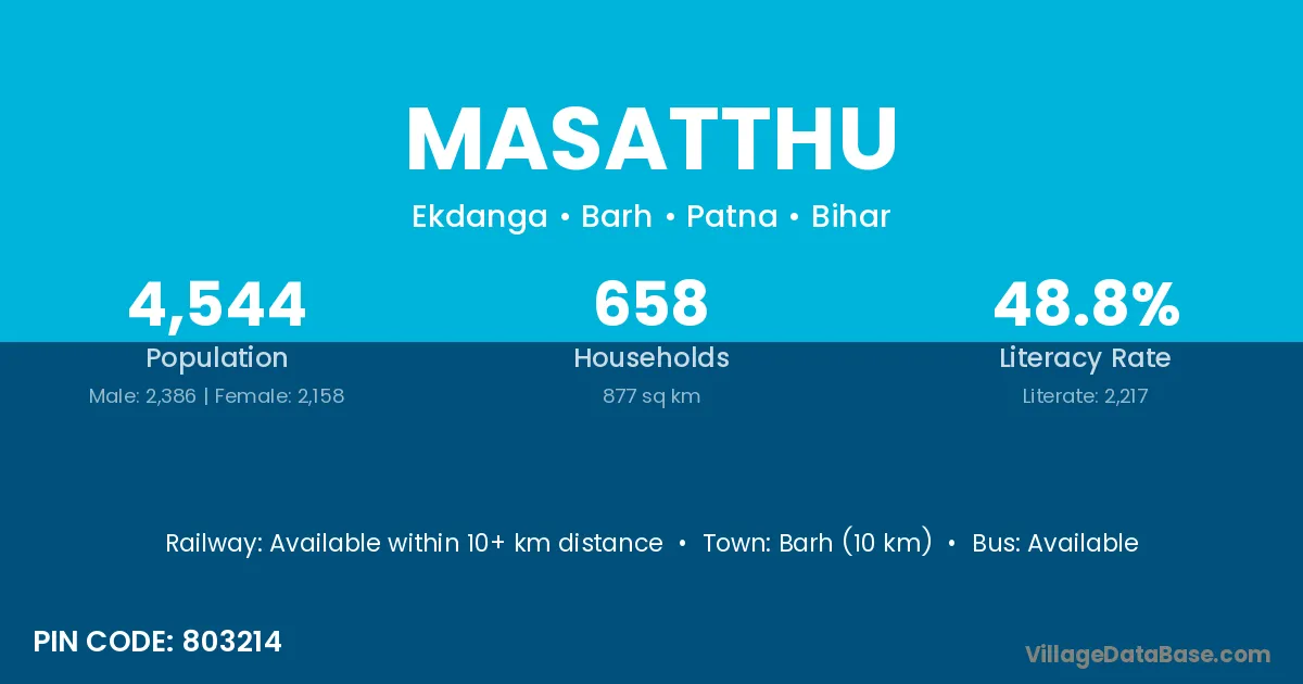 Barh (10 km) is the nearest town to Masatthu village for major economic activities and is located approximately 10 km away.