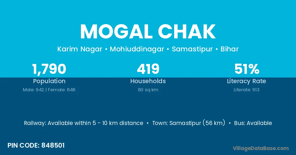 Barh (10 km) is the nearest town to Mogal Chak village for major economic activities and is located approximately 10 km away.