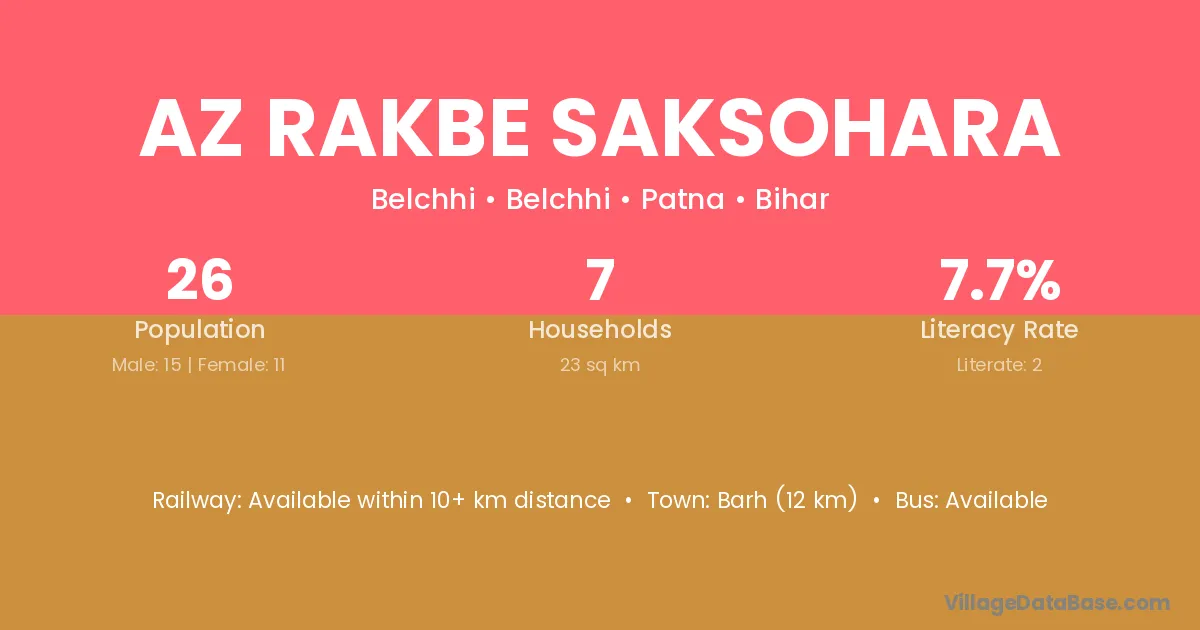 Barh (12 km) is the nearest town to Az Rakbe Saksohara village for major economic activities and is located approximately 12 km away.