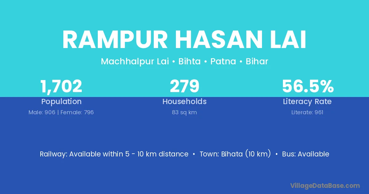 Bihata (10 km) is the nearest town to Rampur Hasan Lai village for major economic activities and is located approximately 10 km away.