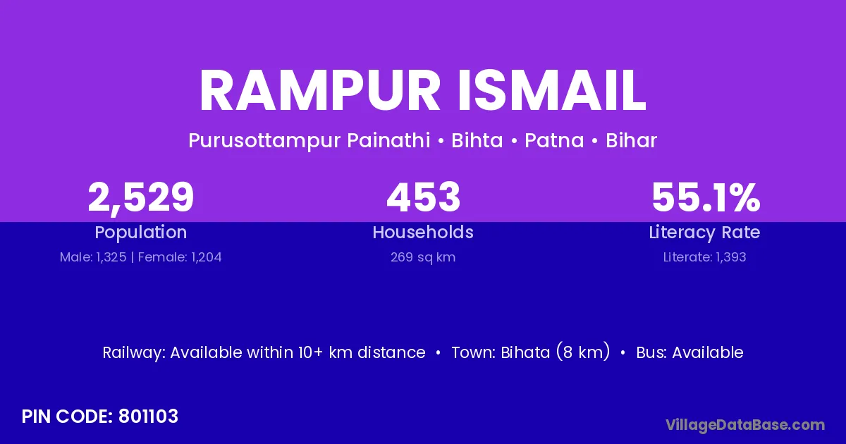 Bihata (8 km) is the nearest town to Rampur Ismail village for major economic activities and is located approximately 8 km away.