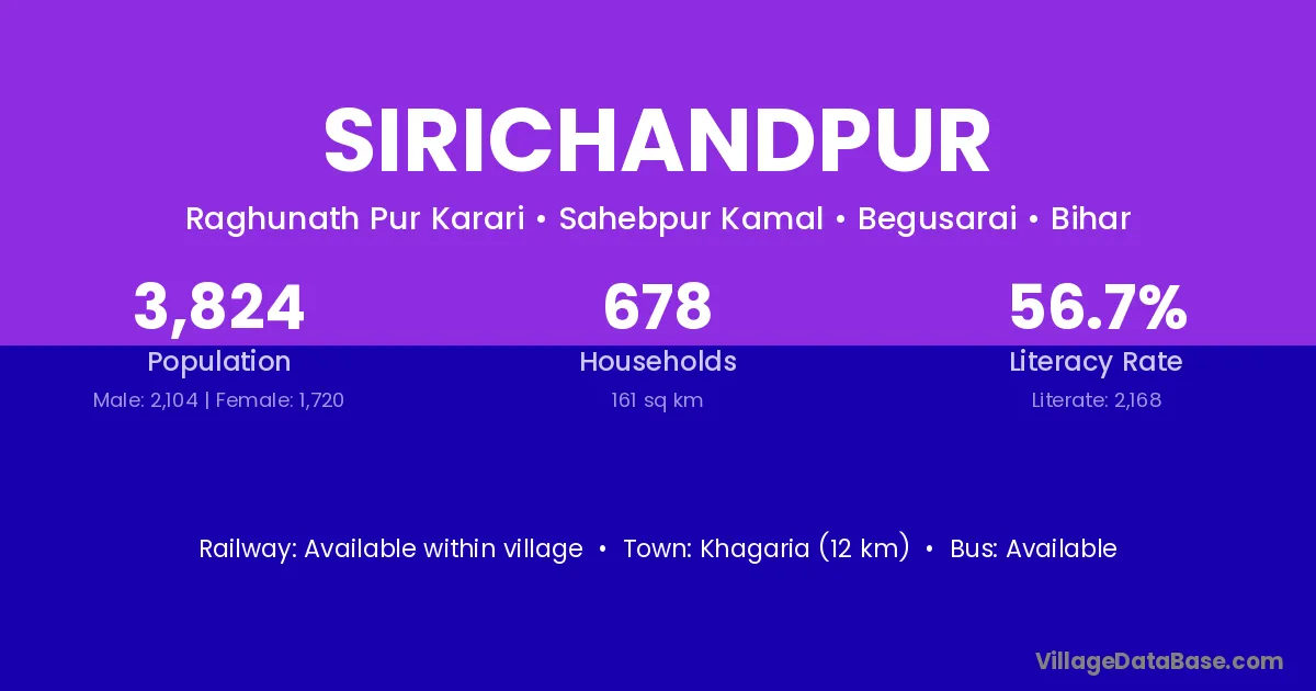 Bihata (11 km) is the nearest town to Sirichandpur village for major economic activities and is located approximately 11 km away.