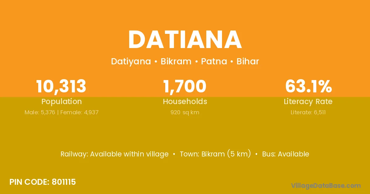 Bikram (5 km) is the nearest town to Datiana village for major economic activities and is located approximately 5 km away.