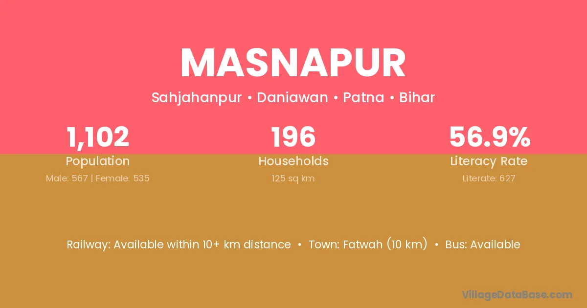 Fatwah (10 km) is the nearest town to Masnapur village for major economic activities and is located approximately 10 km away.