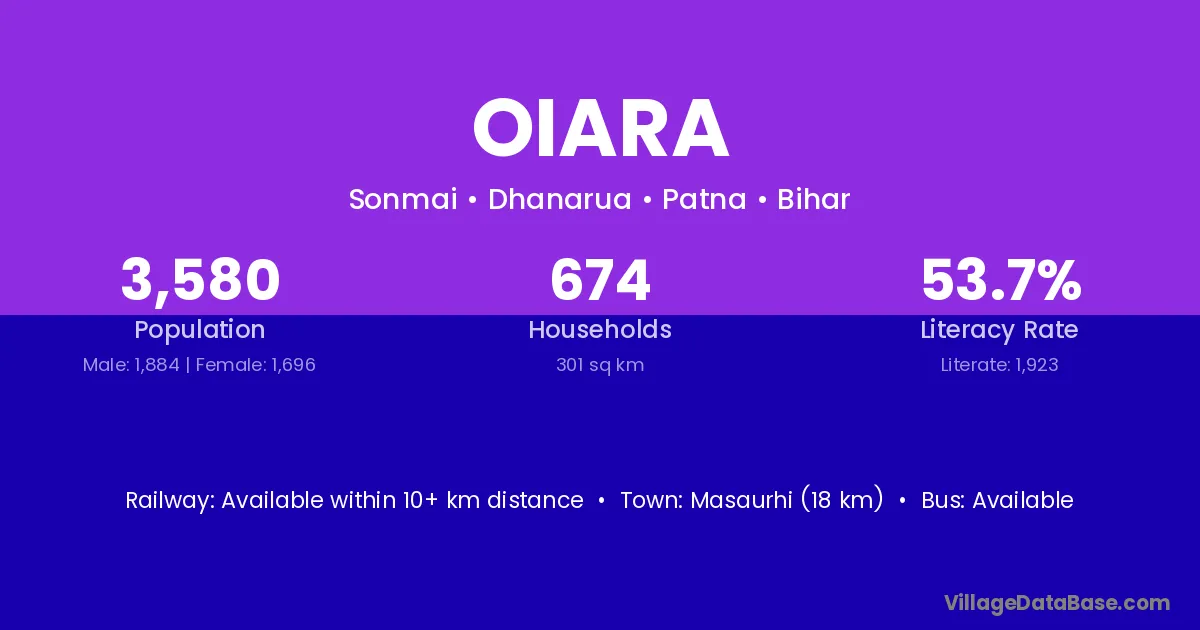 Masaurhi (18 km) is the nearest town to Oiara village for major economic activities and is located approximately 18 km away.
