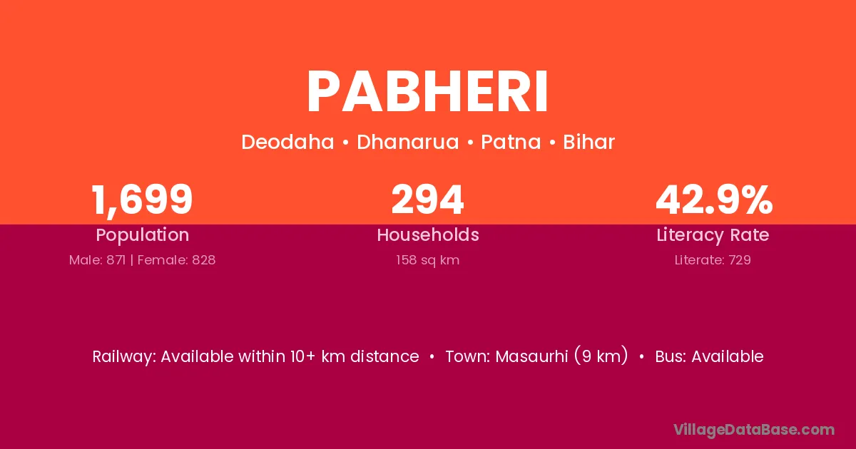 Masaurhi (9 km) is the nearest town to Pabheri village for major economic activities and is located approximately 9 km away.