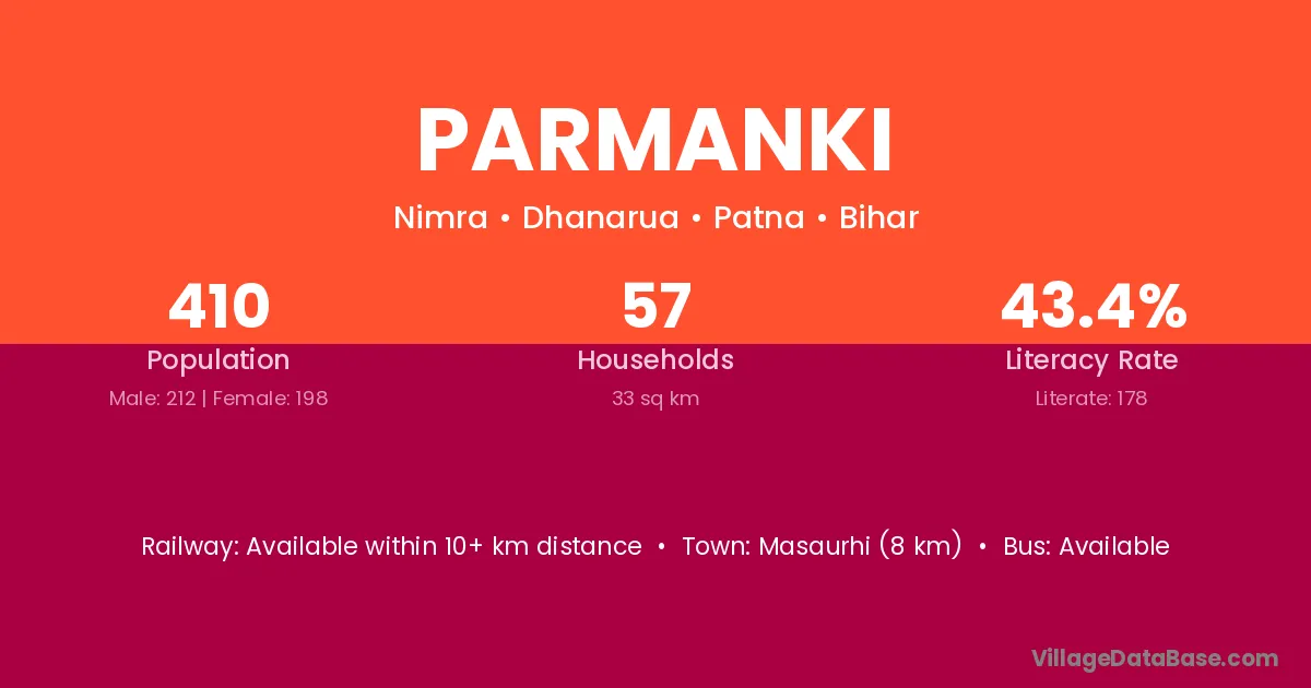 Masaurhi (8 km) is the nearest town to Parmanki village for major economic activities and is located approximately 8 km away.