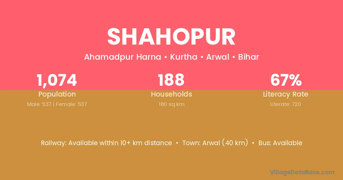 Masaurhi (9 km) is the nearest town to Shahopur village for major economic activities and is located approximately 9 km away.