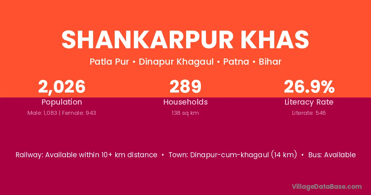 Shankarpur Khas village has a total population of 2,026 people, of which 1,083 are males and 943 are females.