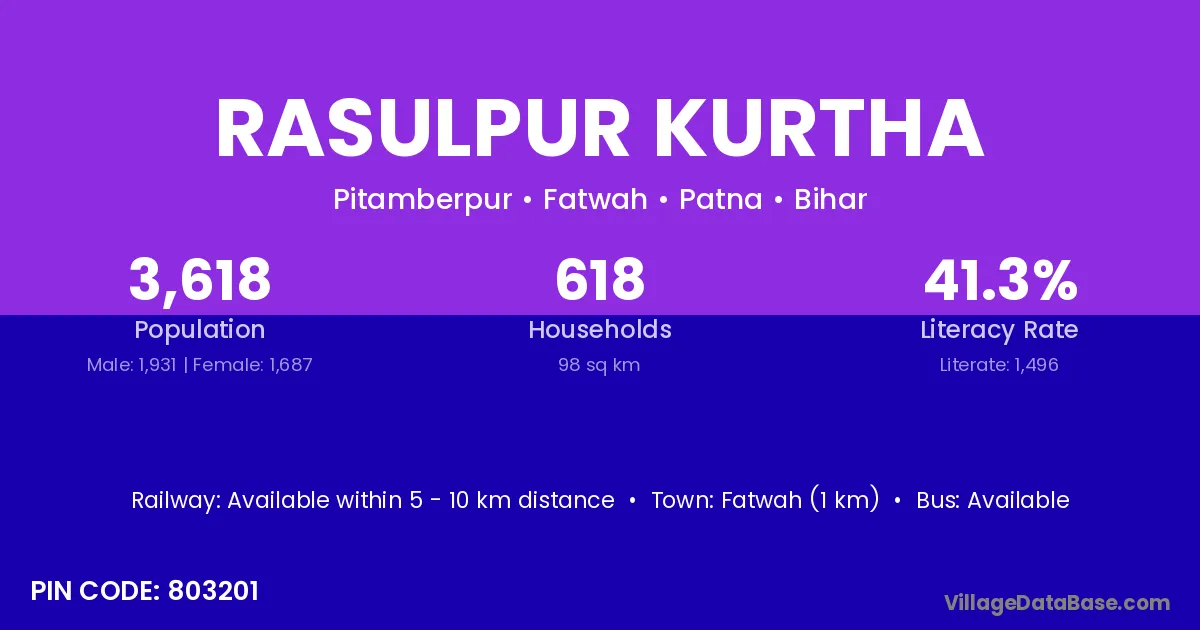 Fatwah (1 km) is the nearest town to Rasulpur Kurtha village for major economic activities and is located approximately 1 km away.