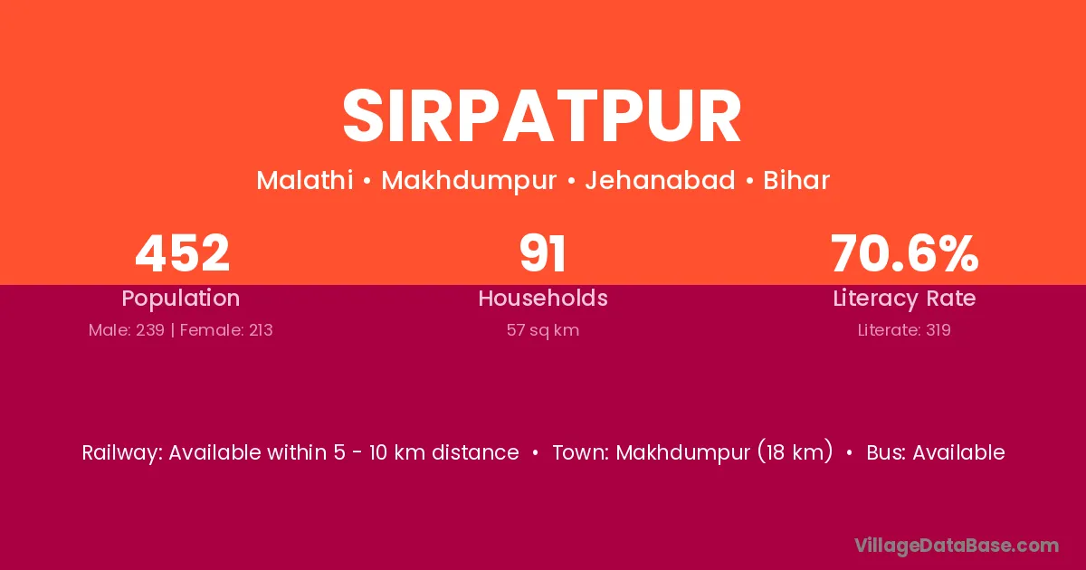 Fatwah (14 km) is the nearest town to Sirpatpur village for major economic activities and is located approximately 14 km away.