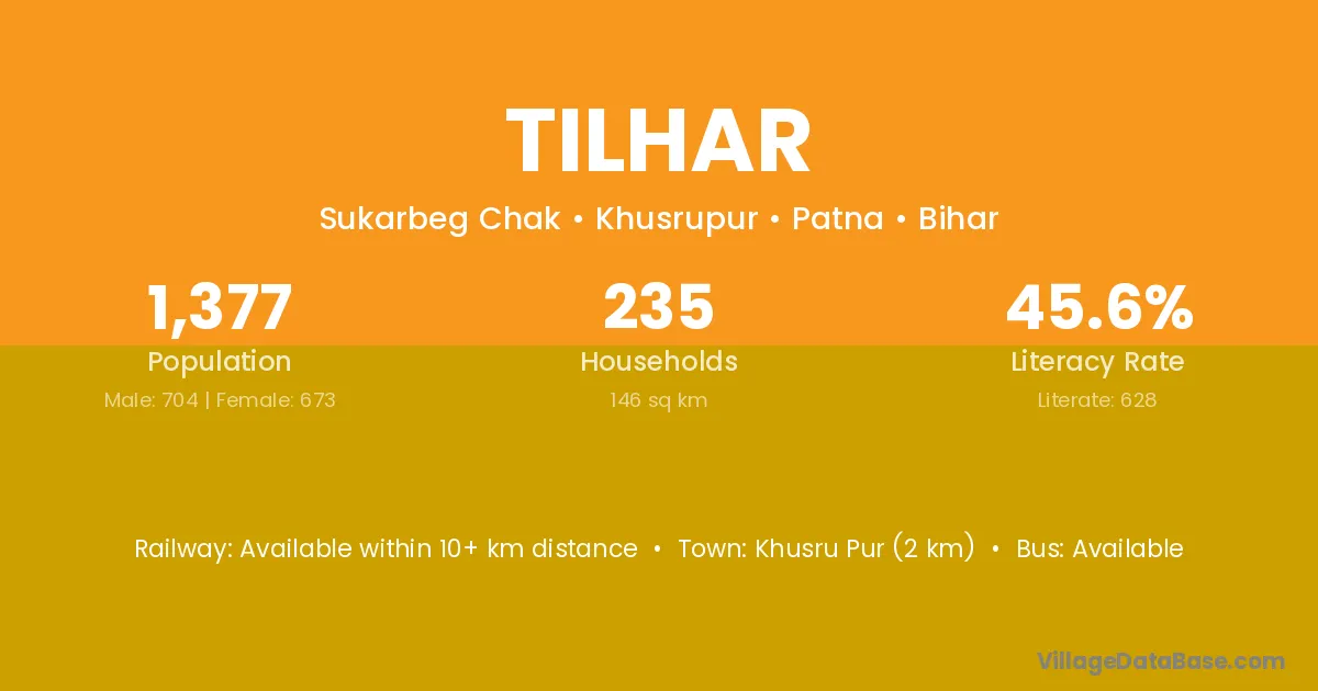 Tilhar village is located in the Khusrupur Subdivision of the Patna district in Bihar .