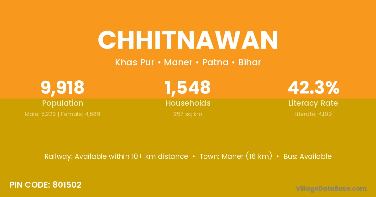 Maner (16 km) is the nearest town to Chhitnawan village for major economic activities and is located approximately 16 km away.