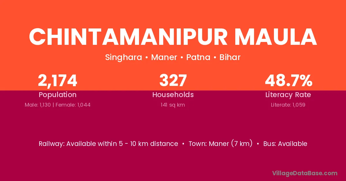 Maner (7 km) is the nearest town to Chintamanipur Maula village for major economic activities and is located approximately 7 km away.