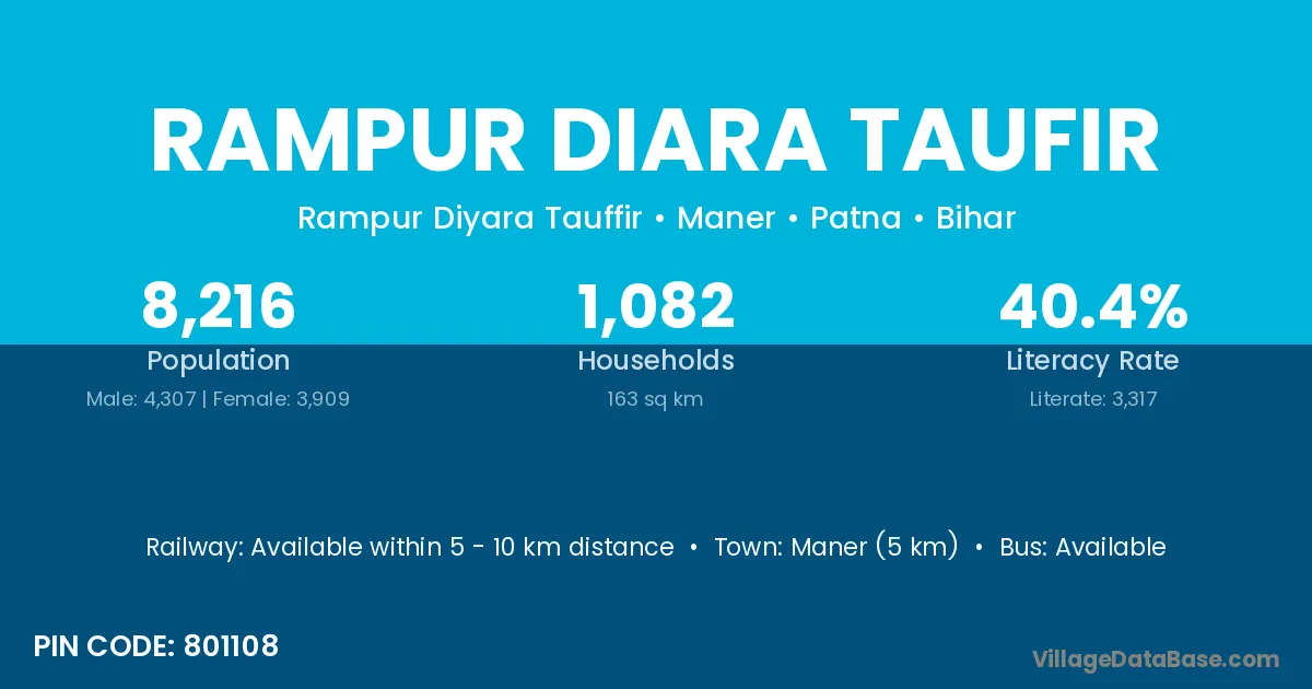 Maner (5 km) is the nearest town to Rampur Diara Taufir village for major economic activities and is located approximately 5 km away.