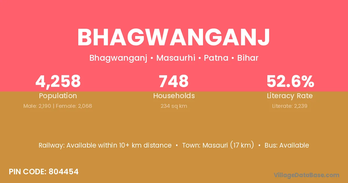 Bhagwanganj village has a total population of 4,258 people, of which 2,190 are males and 2,068 are females.