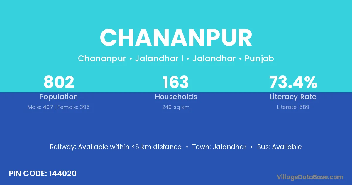 Masauri (6 km) is the nearest town to Chananpur village for major economic activities and is located approximately 6 km away.